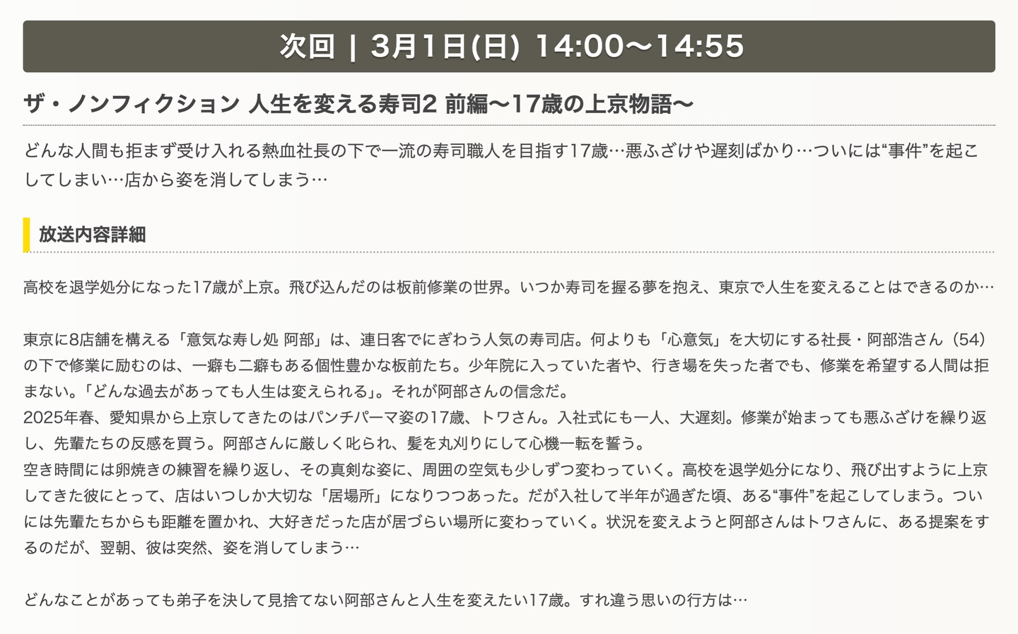 『人生を変える寿司2 前編 〜17歳の上京物語〜』